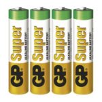 chemické zloženie: alkalické|hmotnosť: 11,4 g|kapacita: neuvádza sa|kategória/rada: Super Alkaline|max. skladovateľnosť: 10 rokov|možnosť nabíjania: nie|napätie: 1,5 V|počet nabíjacích cyklov: nenabíjacie|predajný obal: 4 ks, blister|prevádzková teplota: -20 °C až +54 °C|rozmer: 10,5 × 44,5 mm|typové označenie: LR03 (mikrotužka, AAA)|veľkosť batérie: AAA|značka: GP