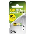 chemické zloženie: alkalické-špeciálne|hmotnosť: 3,5 g|kapacita: neuvádza sa|kategória/rada: High Voltage|max. skladovateľnosť: 3 roky|možnosť nabíjania: nie|napätie: 9 V|počet nabíjacích cyklov: nenabíjacie|predajný obal: 1 ks, blister|prevádzková teplota: 0 °C až +45 °C|rozmer: 8,0 × 21,9 mm|typové označenie: GP 29A (A29, 32A, A32, L822)|veľkosť batérie: neuvádza sa|značka: GP
