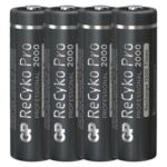 chemické zloženie: NiMH|hmotnosť: 30 g|kapacita: 2 000 mAh|kategória/rada: ReCyko Pro|max. skladovateľnosť: neuvádza sa|možnosť nabíjania: áno|napätie: 1,2 V|počet nabíjacích cyklov: viac ako 1 500|predajný obal: 4 ks, papierová krabička|prevádzková teplota: -20 °C až +50 °C|rozmer: 14,5 × 50,5 mm|typové označenie: HR6 (tužka, AA)|veľkosť batérie: AA|značka: GP