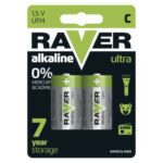 chemické zloženie: alkalické|hmotnosť: 68 g|kapacita: neuvádza sa|kategória/rada: Ultra Alkaline|max. skladovateľnosť: 7 rokov|možnosť nabíjania: nie|napätie: 1,5 V|počet nabíjacích cyklov: nenabíjacie|predajný obal: 2 ks, blister|prevádzková teplota: -20 °C až +60 °C|rozmer: 26,2 × 50,0 mm|typové označenie: LR14 (malé mono, C)|veľkosť batérie: C|značka: Raver