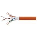 AWG: 23|dĺžka: 500 m|farba plášťa: oranžová (RAL 2003)|hrúbka izolácie vodičov: 1,33 mm|hrúbka plášťa: 1,1 mm|izolácia vodičov: HDPE|kategória: CAT6A|konštrukcia kábla: drôt|materiál vnútorného vodiča: meď (Cu)|maximálna prevádzková vlhkosť: 93 %|montážna teplota: +5 °C až +60 °C|najvyšší podporovaný protokol: 10GBASE-T|nebezpečné látky: žiadne|osadené konektory: nie|plášť kábla: LSZH|plášť so zníženou dymivosťou LSZH (LS0H): áno|počet vodičov: 8+1|predajný obal: 500 m, drevená cievka|priemer kábla: 7,6 mm|priemer vnútorného vodiča: 0,56 mm|produkt: STP kábel bez konektorov|skladovacia teplota: -20 °C až +60 °C|ťahový prvok: nylon 150D + PE kríž|tienenie: Al/PET 7/12–18 mm|trieda reakcie na oheň: B2ca–s1–d1–a1|typ: STP CAT 6A LSZH|typ ochrany konektorov: neuvádza sa|záručná doba: 20 rokov|značenie kábla: STP Cat6A LSZH 1 – 500 m