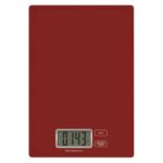 automatické vypnutie: po 2 minútach|Bluetooth: nie|BMI index – meranie tuku, vody a svalovej hmoty: nie|farba: červená|funkcia dovažovania: áno|indikácia slabých batérií: áno|indikátor preťaženia: áno|jednotky váhy: g, oz, lb, kg|LCD displej: áno|max. záťaž: 5 kg|napájanie: 1× 3 V CR2032 (súčasťou balenia)|pamäť: nie|podsvietený displej: nie|povrch váhy: tvrdené sklo|predajný obal: 1 ks, krabička|presnosť váženia: 1 g|produkt: kuchynská váha|rozmer: 15 × 152 × 219 mm