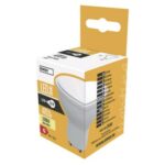 energetická trieda: G|farba svetla: teplá biela|index podania farieb (CRI): Ra >80|náhrada za žiarovku: 40 W|napätie: 230 V~/50 Hz|pätica (uchytenie žiarovky): GU10|počet čipov: 6|počet spínacích cyklov: 15 000|predajný obal: 1 ks, krabička|príkon: 5,8 W|rada: BASIC|rozmer: 56 × 50 × 50 mm|stmievateľná: nie|svetelná účinnosť: 70 lm/W|svetelný tok: 470 lm|technológia: LED|teplota chromatičnosti: 3 000 K|tvar: MR16|typ čipov: 2835|účinník: 0,5|uhol vyžarovania: 110°|záručná doba: 2 roky|životnosť: 20 000 hodín