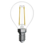 energetická trieda: D|farba svetla: teplá biela|index podania farieb (CRI): Ra >80|náhrada za žiarovku: 25 W|napätie: 230 V~/50 Hz|pätica (uchytenie žiarovky): E14|počet čipov: 2|počet spínacích cyklov: 30 000|predajný obal: 1 ks, krabička|príkon: 1,8 W|rada: FILAMENT|rozmer: 80 × 45 × 45 mm|stmievateľná: nie|svetelná účinnosť: 139 lm/W|svetelný tok: 250 lm|technológia: LED|teplota chromatičnosti: 2 700 K|tvar: Mini Globe|typ čipov: COB|účinník: 0,41|uhol vyžarovania: 320°|záručná doba: 3 roky|životnosť: 25 000 hodín