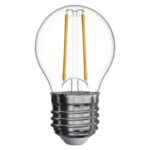 energetická trieda: D|farba svetla: teplá biela|index podania farieb (CRI): Ra >80|náhrada za žiarovku: 25 W|napätie: 230 V~/50 Hz|pätica (uchytenie žiarovky): E27|počet čipov: 2|počet spínacích cyklov: 30 000|predajný obal: 1 ks, krabička|príkon: 1,8 W|rada: FILAMENT|rozmer: 80 × 45 × 45 mm|stmievateľná: nie|svetelná účinnosť: 139 lm/W|svetelný tok: 250 lm|technológia: LED|teplota chromatičnosti: 2 700 K|tvar: Mini Globe|typ čipov: COB|účinník: 0,41|uhol vyžarovania: 320°|záručná doba: 3 roky|životnosť: 25 000 hodín