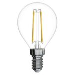 energetická trieda: E|farba svetla: teplá biela|index podania farieb (CRI): Ra >80|náhrada za žiarovku: 25 W|napätie: 230 V~/50 Hz|pätica (uchytenie žiarovky): E14|počet čipov: 2|počet spínacích cyklov: 25 000|predajný obal: 1 ks, krabička|príkon: 2,2 W|rada: FILAMENT|rozmer: 80 × 45 × 45 mm|stmievateľná: nie|svetelná účinnosť: 114 lm/W|svetelný tok: 250 lm|technológia: LED|teplota chromatičnosti: 2 700 K|tvar: Mini Globe|typ čipov: COB|účinník: 0.37|uhol vyžarovania: 320°|záručná doba: 3 roky|životnosť: 25 000 hodín